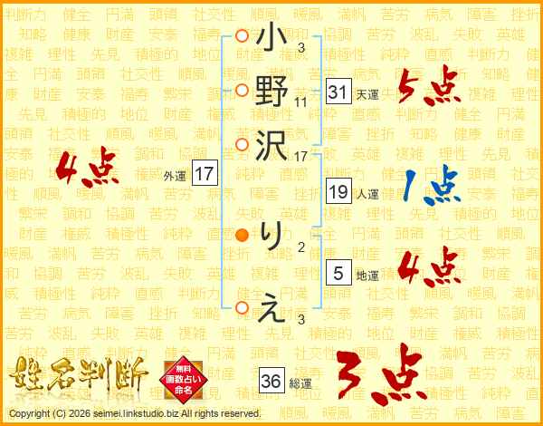 小野沢りえさんの外運は17画の4点!