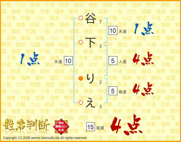谷下りえさんの総運は15画の4点!
