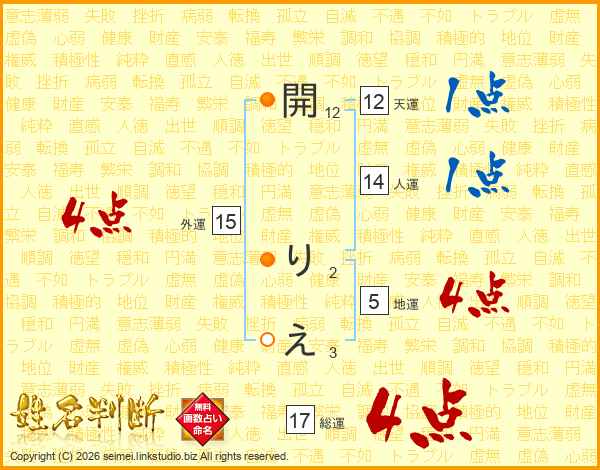 開りえさんの総運は17画の4点!