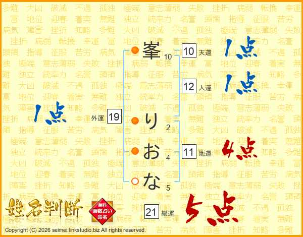 峯りおなさんの外運は19画の1点!