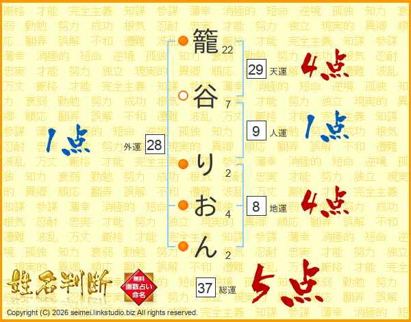 籠谷りおんさんの総運は37画の5点!