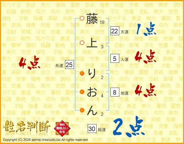 藤上りおんさんの総運は30画の2点!