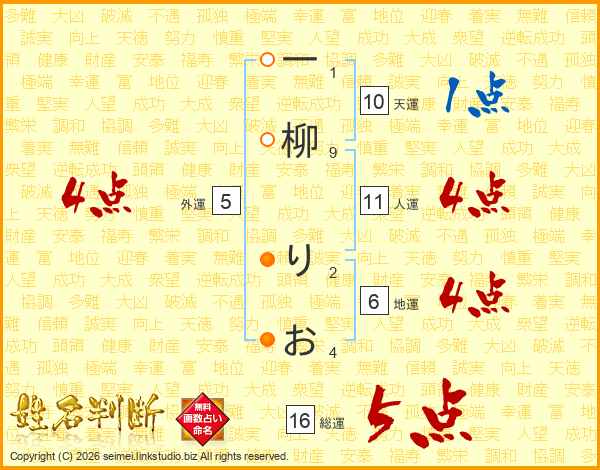 一柳りおさんの総運は16画の5点!