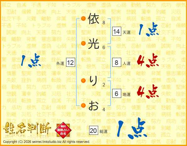 依光りおさんの総運は20画の1点!