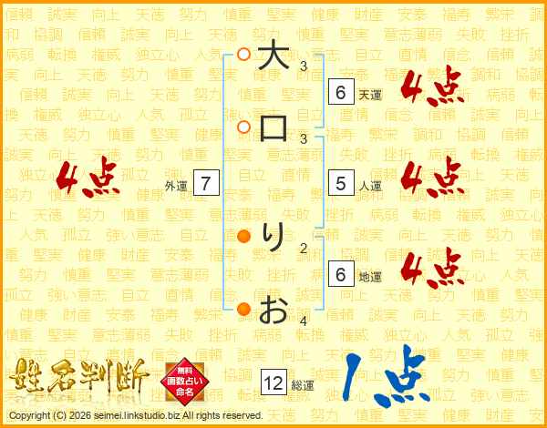 大口りおさんの総運は12画の1点!