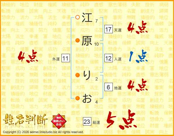 江原りおさんの総運は23画の5点!