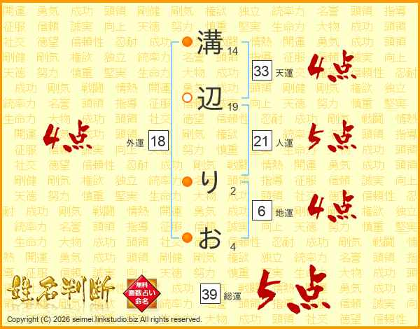 溝辺りおさんの天運は33画の4点!