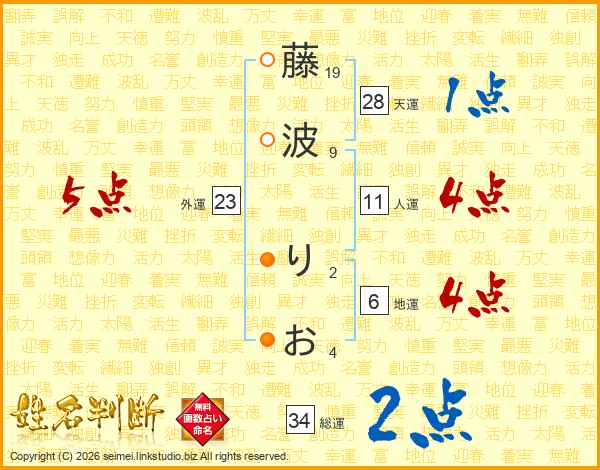藤波りおさんの総運は34画の2点!