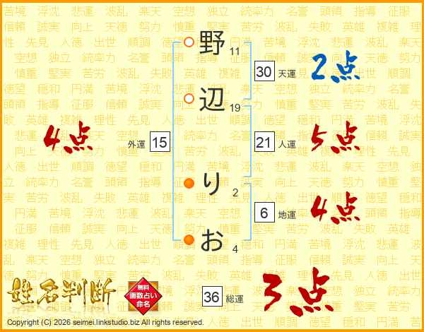 野辺りおさんの天運は30画の2点!