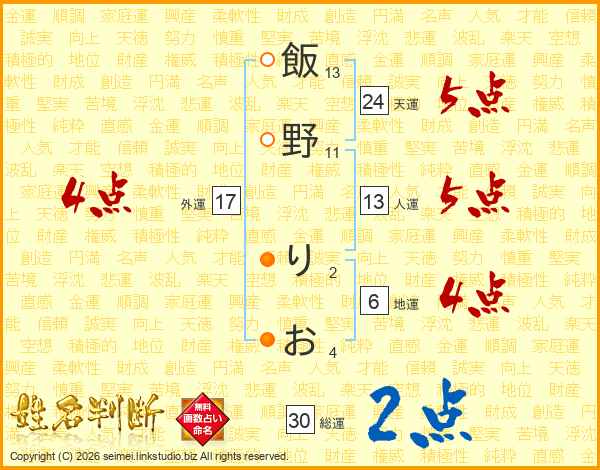飯野りおさんの外運は17画の4点!