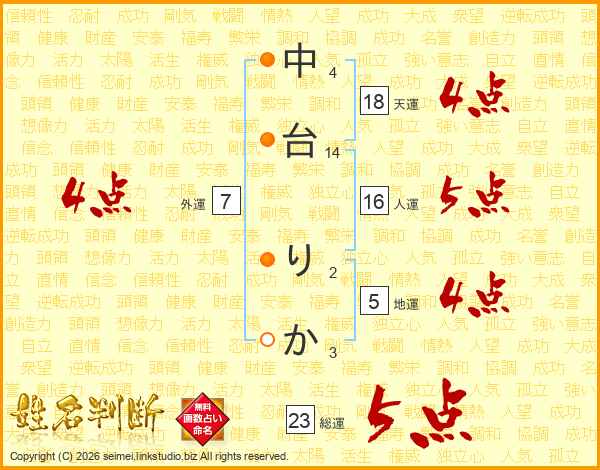 中台りかさんの総運は23画の5点!