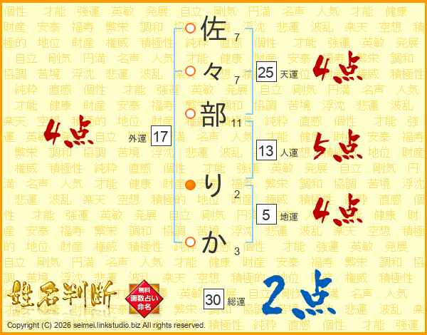 佐々部りかさんの天運は25画の4点!