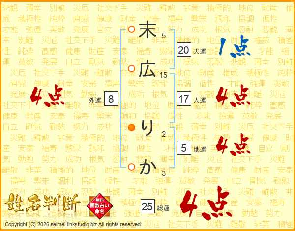 末広りかさんの天運は20画の1点!