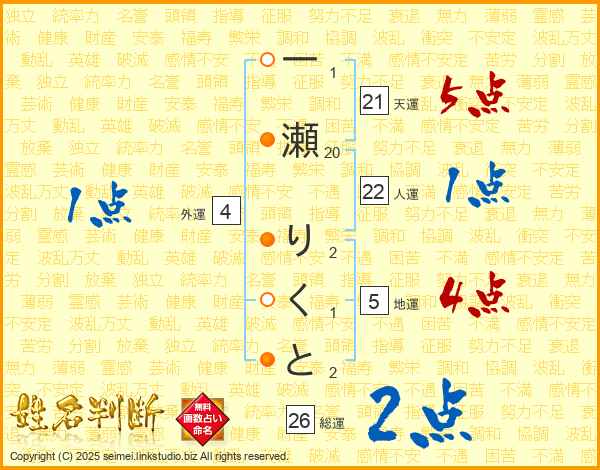 一瀬りくとさんの天運は21画の5点!