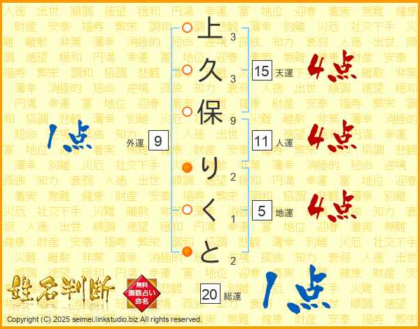 上久保りくとさんの総運は20画の1点!