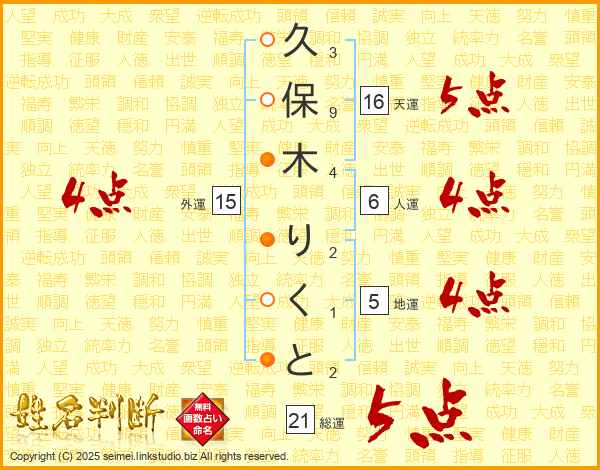久(3画)保(9画)木(4画) り(2画)く(1画)と(2画)