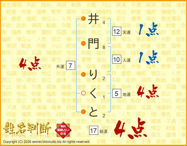 井門りくとさんの総運は17画の4点!