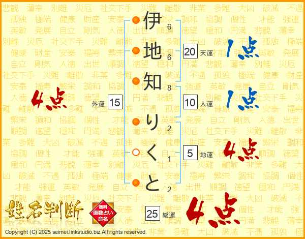 伊地知りくとさんの総運は25画の4点!