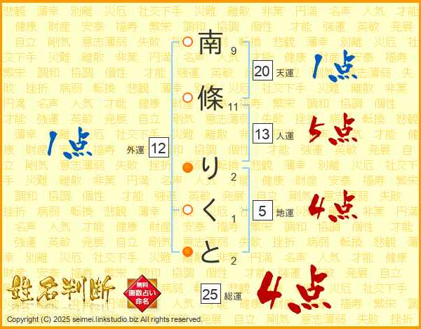 南條りくとさんの総運は25画の4点!
