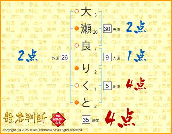 大(3画)瀬(20画)良(7画) り(2画)く(1画)と(2画)