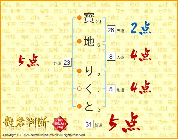 寳地りくとさんの天運は26画の2点!
