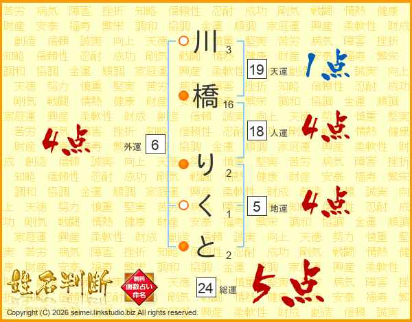 川橋りくとさんの総運は24画の5点!