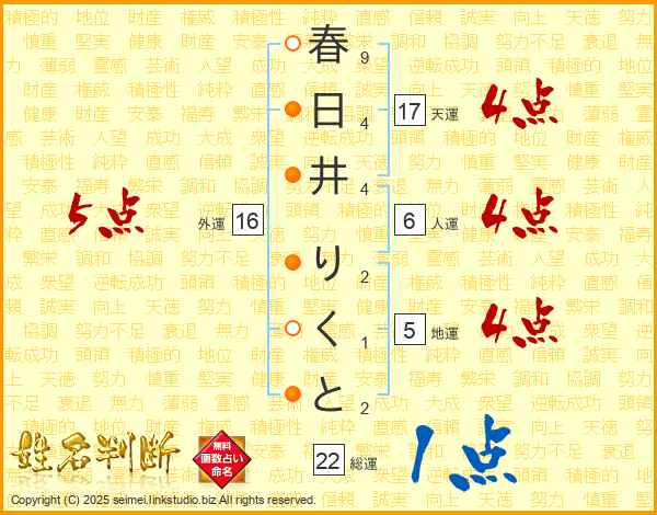 春(9画)日(4画)井(4画) り(2画)く(1画)と(2画)