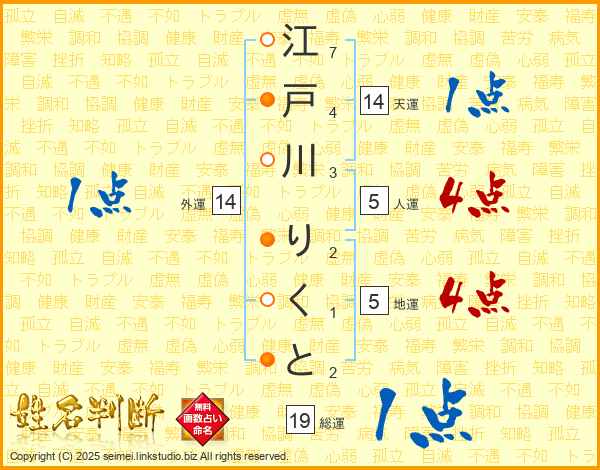 江戸川りくとさんの総運は19画の1点!