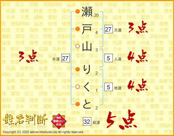 瀬(20画)戸(4画)山(3画) り(2画)く(1画)と(2画)