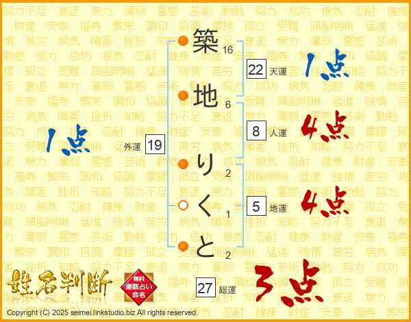 築(16画)地(6画) り(2画)く(1画)と(2画)