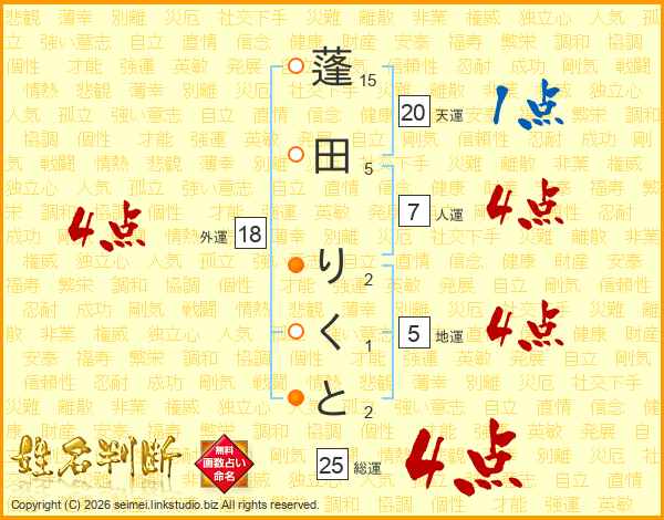 蓬田りくとさんの総運は25画の4点!