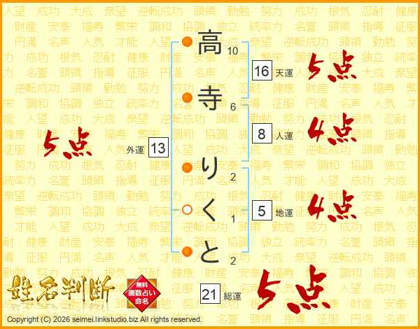 高寺りくとさんの総運は21画の5点!