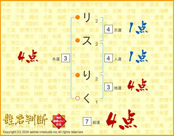 リスりくさんの総運は7画の4点!