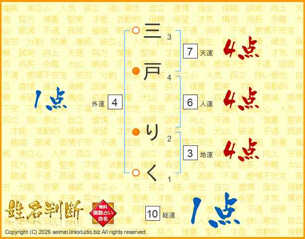 三戸りくさんの天運は7画の4点!