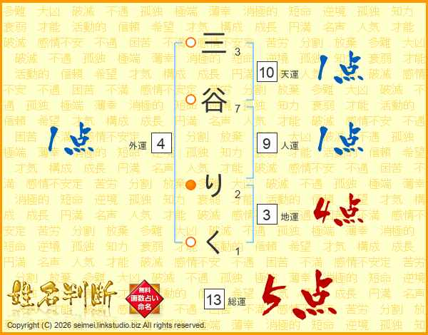三谷りくさんの総運は13画の5点!