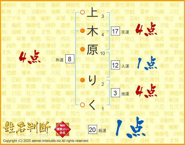 上木原りくさんの天運は17画の4点!