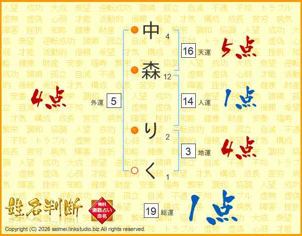 中森りくさんの天運は16画の5点!