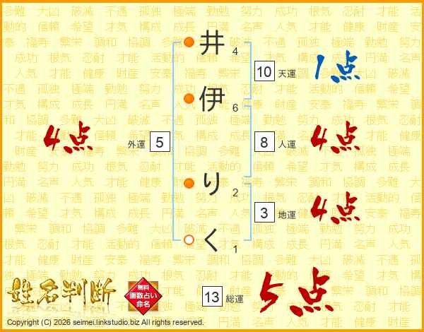 井伊りくさんの総運は13画の5点!
