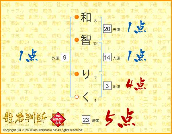 和智りくさんの総運は23画の5点!