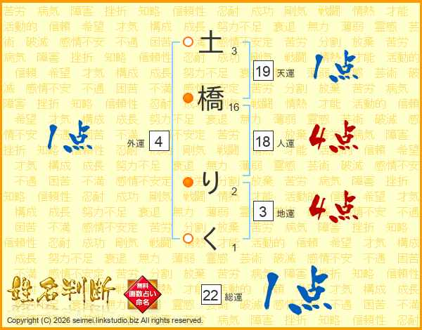 土橋りくさんの総運は22画の1点!