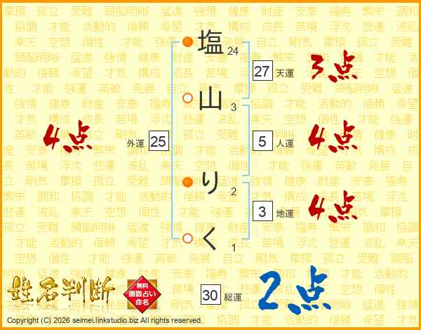 塩山りくさんの天運は27画の3点!