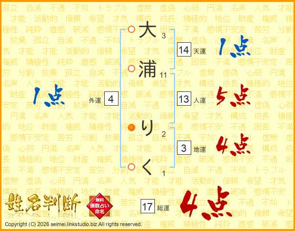 大浦りくさんの天運は14画の1点!