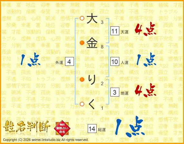 大金りくさんの総運は14画の1点!