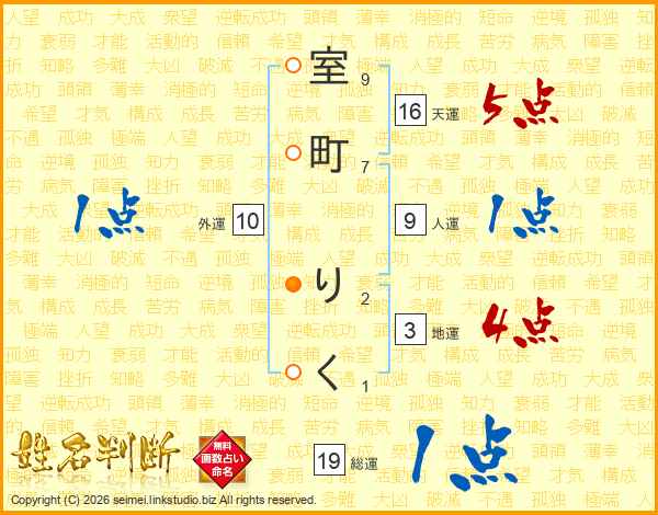 室町りくさんの総運は19画の1点!
