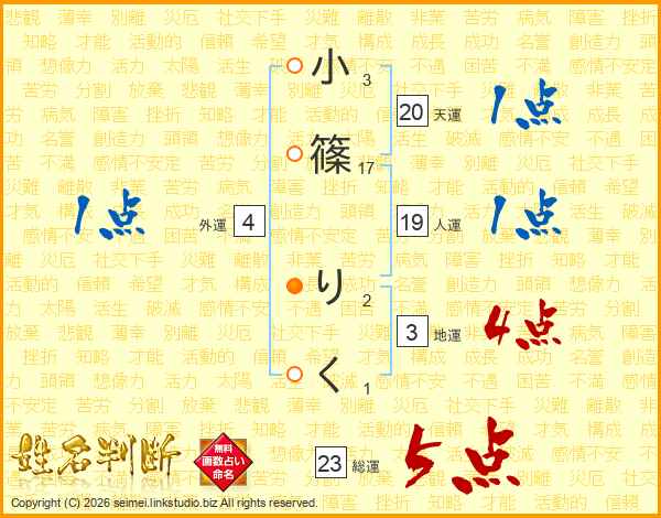 小篠りくさんの総運は23画の5点!