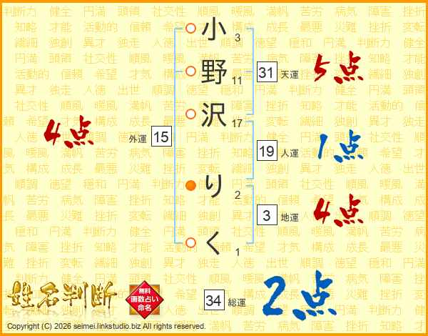 小野沢りくさんの総運は34画の2点!