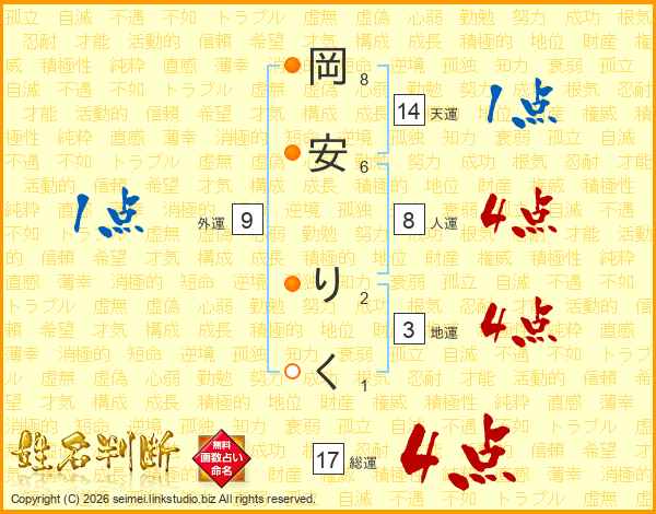 岡安りくさんの総運は17画の4点!