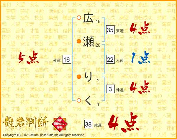 広瀬りくさんの総運は38画の4点!