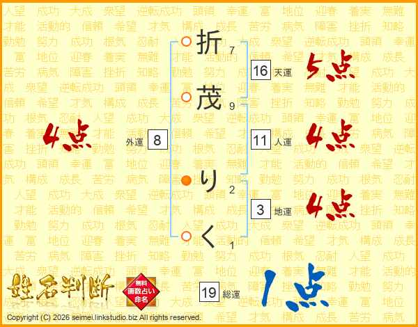 折(7画)茂(9画) り(2画)く(1画)