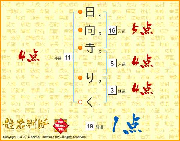 日向寺りくさんの総運は19画の1点!